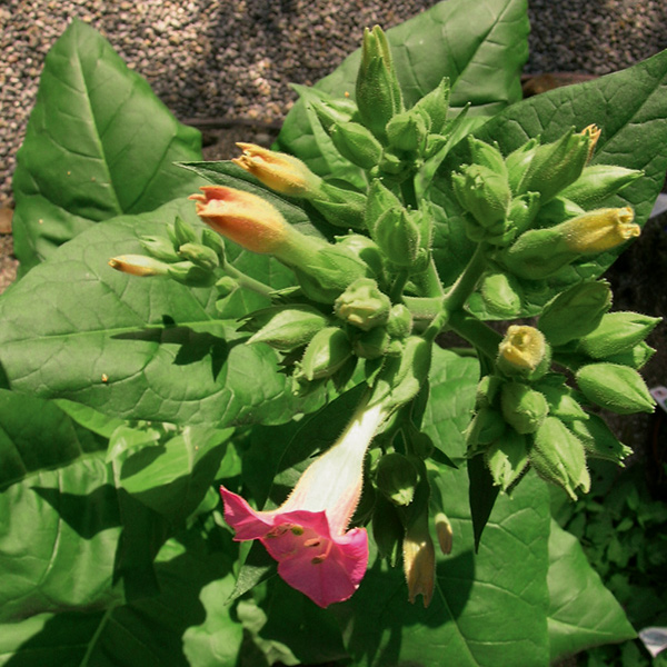Giftig! Das giftige Alkaloid, das Nicotin, wird größtenteils in den Wurzeln gebildet, wandert aber im Laufe des Wachstums in die Blätter.