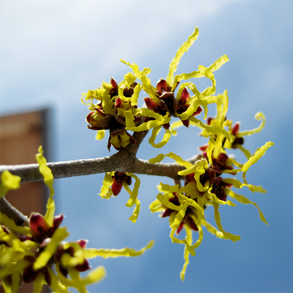 Hamamelis ist ein Winterblüher. Es ist immer wieder faszinierend, die bezaubernden, zarten Blüten zwischen Dezember und Februar vom Schnee umgeben zu sehen. Die Blätter wachsen erst nach der Blüte. Für Teezubereitungen werden die Blätter im Spätherbst und die Rinde im Frühjahr nach dem Ausschneiden der dürren Äste gesammelt.