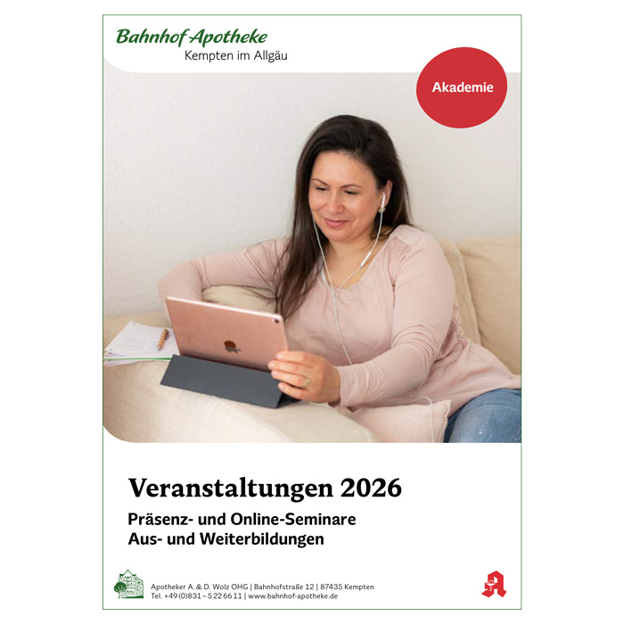 Ob Sie Ihre körperliche und mentale Fitness stärken, fundierte Beratung zu Schwangerschaft, Geburt und Babypflege suchen oder Ihre Ernährung bewusst gestalten möchten – die Akademie der Bahnhof-Apotheke bietet ein inspirierendes und vielfältiges Veranstaltungsprogramm.